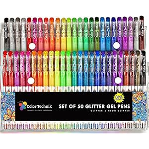 Glitter Gel Pens by Color Technik, Set of 50 Individual Colors, 40% More Ink. Largest Non-Toxic Artist Quality Glitter…